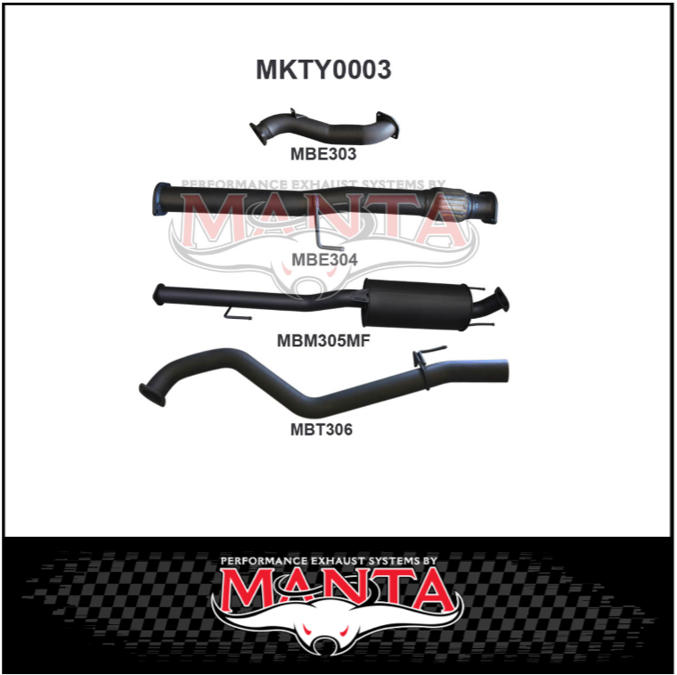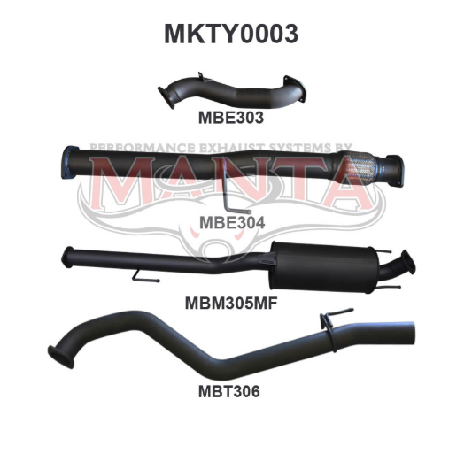 MANTA 3" TURBO BACK NO CAT/MUFFLER EXHAUST SYSTEM FITS TOYOTA HILUX KUN26R 3.0L 4CYL 2005-2015 (MKTY0003)