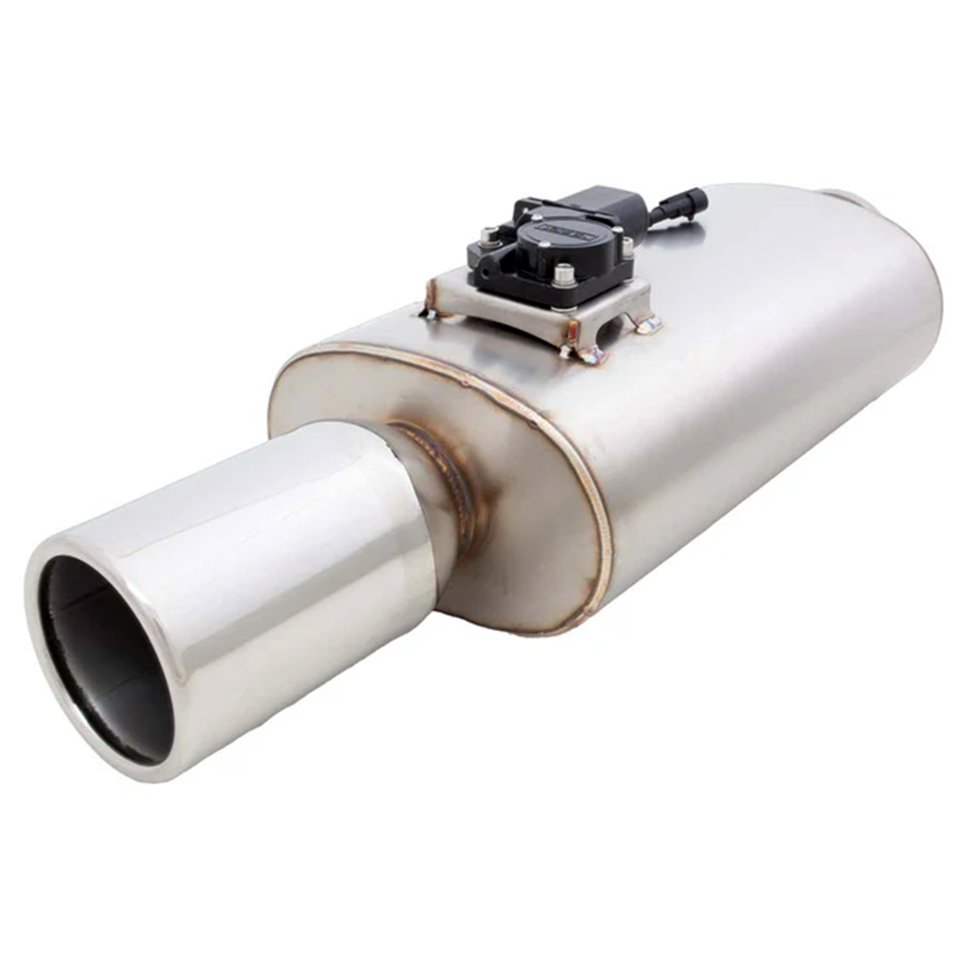THE VAREX VALVED UNIVERSAL MUFFLER IS THE IDEAL ADD-ON FOR OWNERS AND EXHAUST BUILDERS ALIKE THAT ARE LOOKING FOR A COMPACT, VALVED OVAL MUFFLER SOLUTION TO INCORPORATE INTO THEIR 2.5” EXHAUST SYSTEM BUILD. UTILISING OUR VAREX MUFFLER ALLOWS YOU TO INSTANTLY EXPAND YOUR PERFORMANCE AND ACOUSTIC OPTIONS WITH THE INTEGRATED EXHAUST VALVE CONTROL – ACTIVATED BY THE SUPPLIED VAREX CONTROLLER AND TWO KEY FOBS. THE MUFFLER BODY MEASURES 9.5” WIDE BY 5.5" HIGH BY 15” LONG AND UTILISES A FLANGED 2.5” CENTRE-INLET CENTRE-OUT CONFIGURATION WITH 4" TIP, FOR EASIER INSTALLATION.